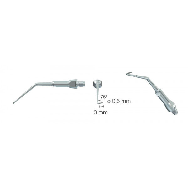 Для использования в каналах моляров правой верхней челюсти и нижней левой диаметр 0.5 мм, угол 75°