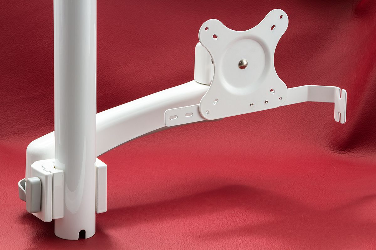 • Высота (в упаковке): 7.5 см Ширина (в упаковке): 13 см Длина (в упаковке): 42 см Вес (в упаковке): 1.25 кг (общий) Изготовленный из высококачественной стали марки А10 и держатель покрыт порошковой антибактерицидной краской. При помощи удобной конструкции можно регулировать усилие сдвига монитора, а также крепить монитор на различные поверхности
