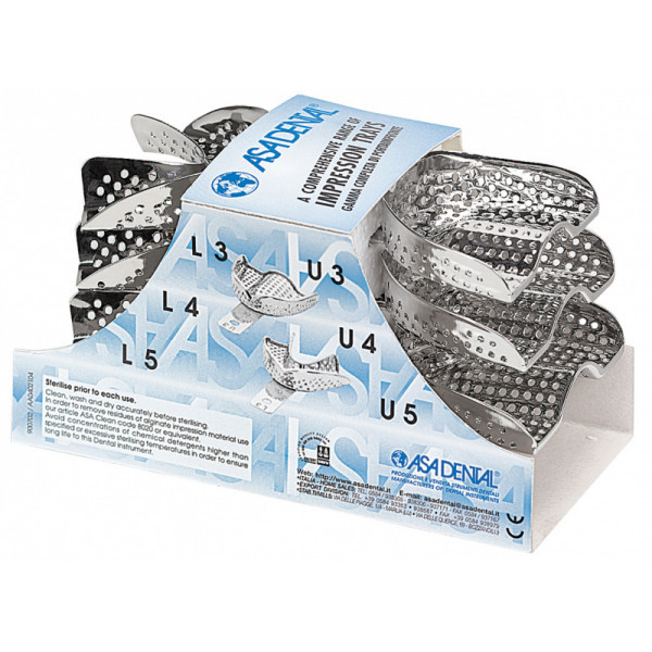 • Ложка слепочная, набор 6 штук, с перфорацией без бортиков, Asa Dental (Италия)