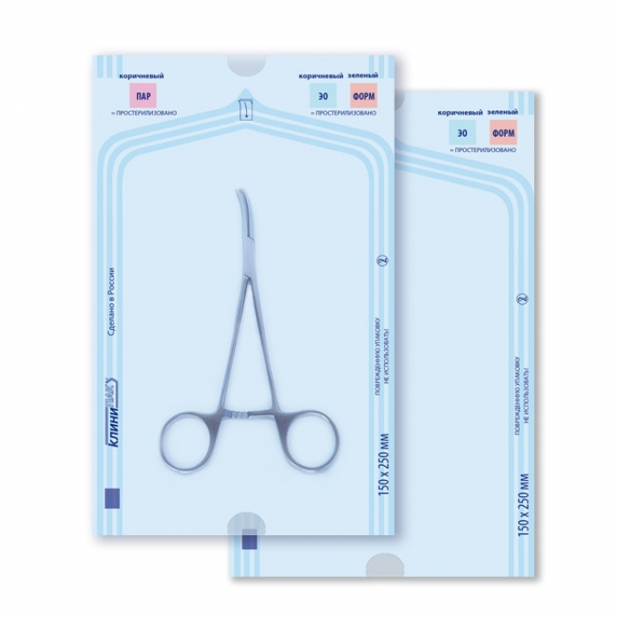Пакеты плоские КЛИНИПАК представляют собой комбинированную упаковку различной ширины, состоящую из синтетической многослойной пленки и бумаги плотностью 60 либо 70 гр/м2, и предназначенную для упаковывания небольших по толщине изделий.
